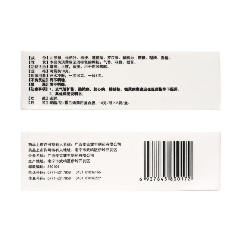 川貝羅漢止咳顆粒 10g*8袋 廣西麥克健豐制藥有限公司